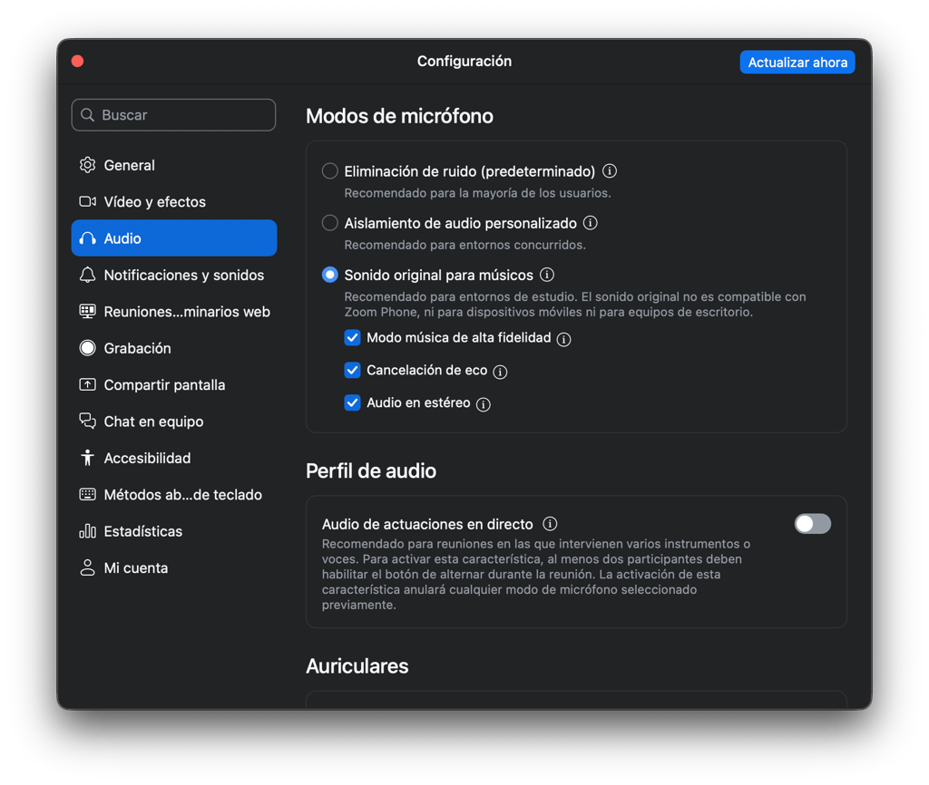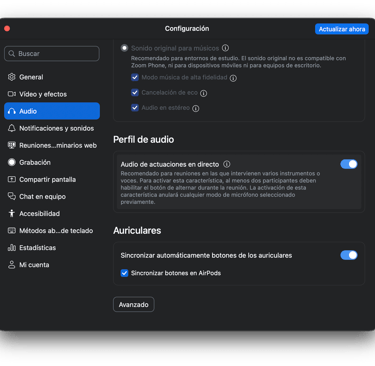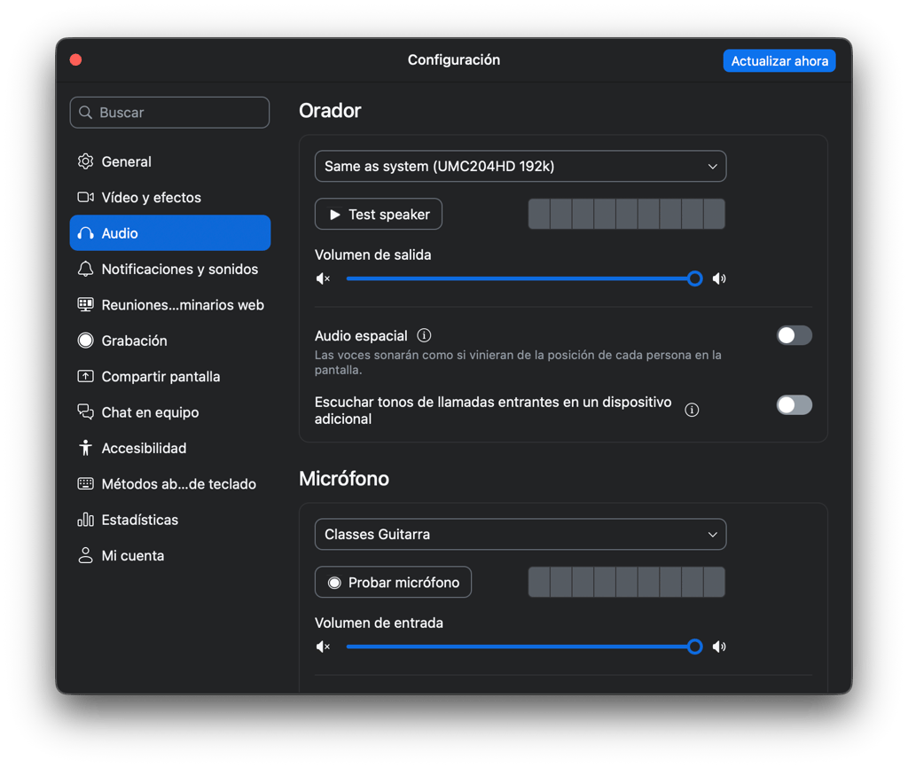 Això és imprescindible perquè Zoom rebi exactament la combinació de so que estàs utilitzant.