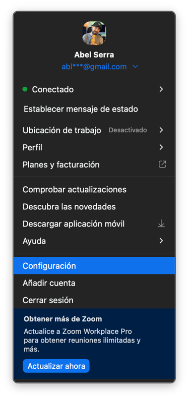 Seleccionar Voicemeeter com a Audio Input a Zoom.