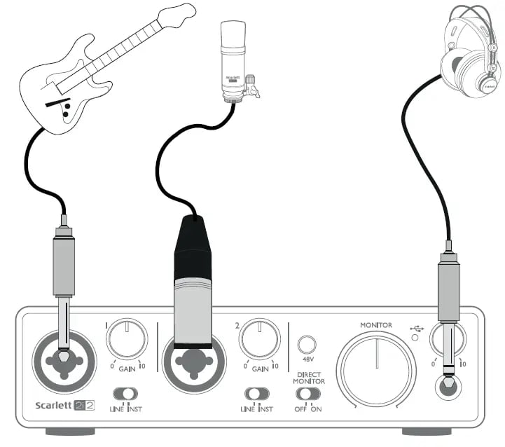 Una sola entrada per guitarra i veu és la configuració més senzilla, i és ideal per començar