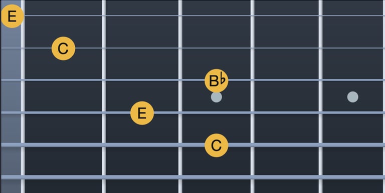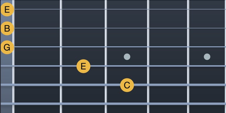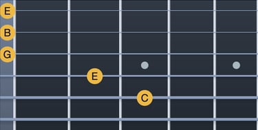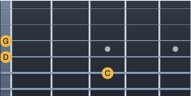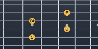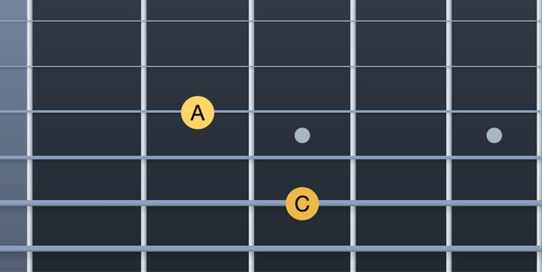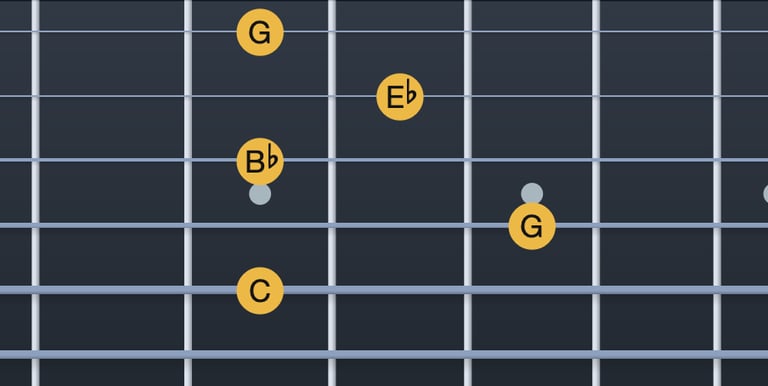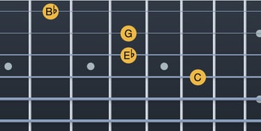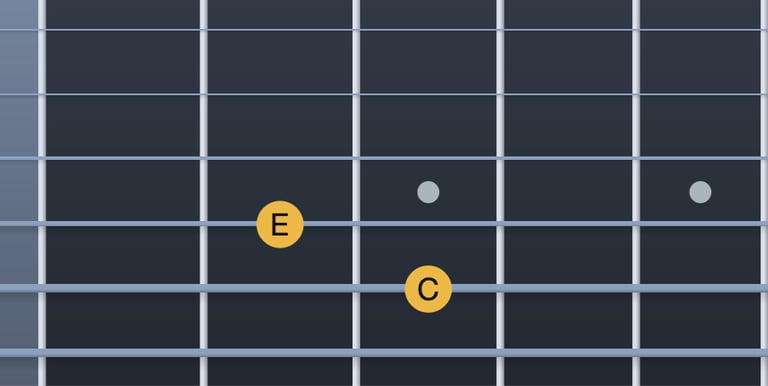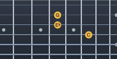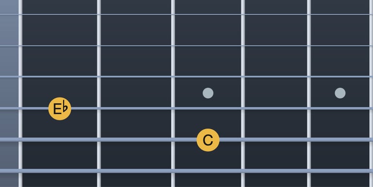Do → Mib = tercera menor (corda 5, trast 3; corda 4, trast 1)