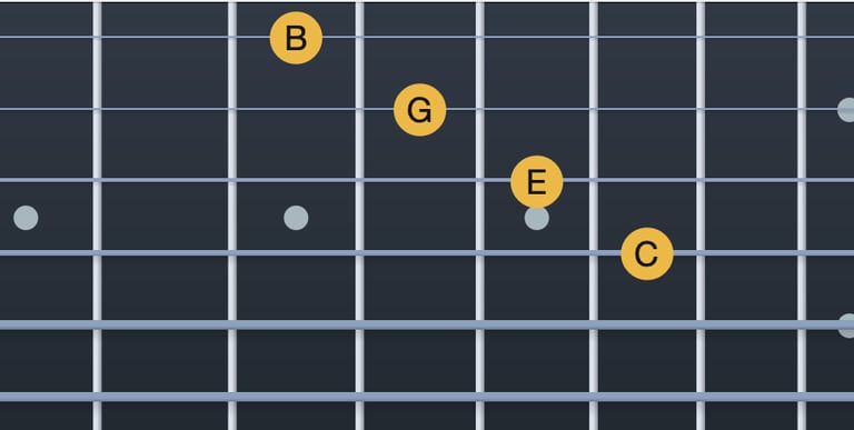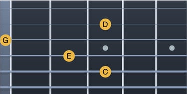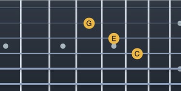 Do → Mi = tercera major (corda 5, trast 3; corda 4, trast 2)