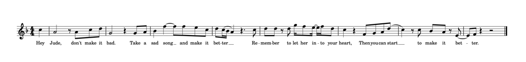 1️⃣ Mira esta partitura de la melodía de "Hey Jude" (haz clic encima para verla más grande):
